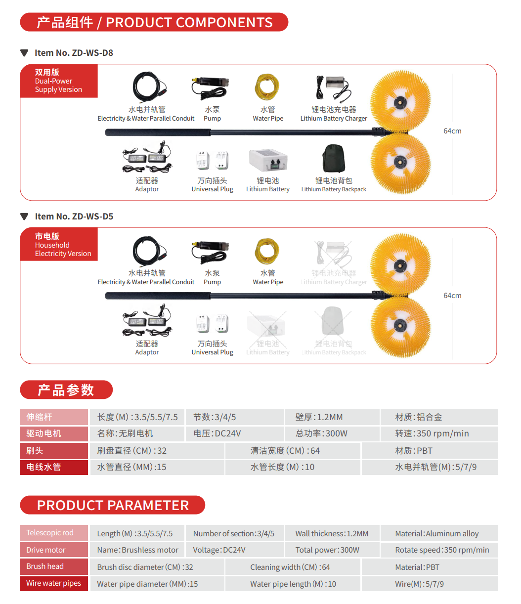 Double Disc Solar Panel Cleaning Brush