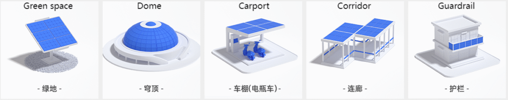 Combines power generation and building functions: photovoltaic modules replace traditional building materials (such as tiles, glass curtain walls) without occupying additional land or space.